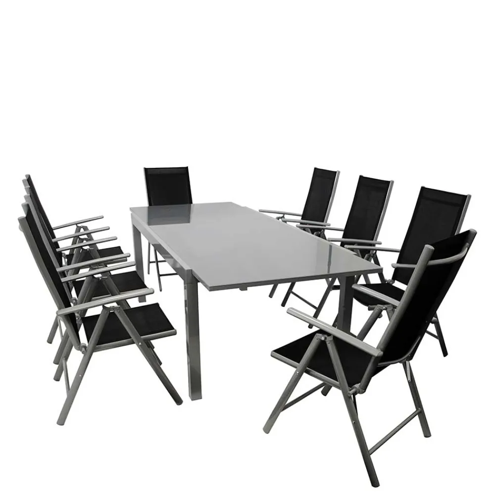 in Schwarz und Grau mit Klappsesseln (neunteilig)