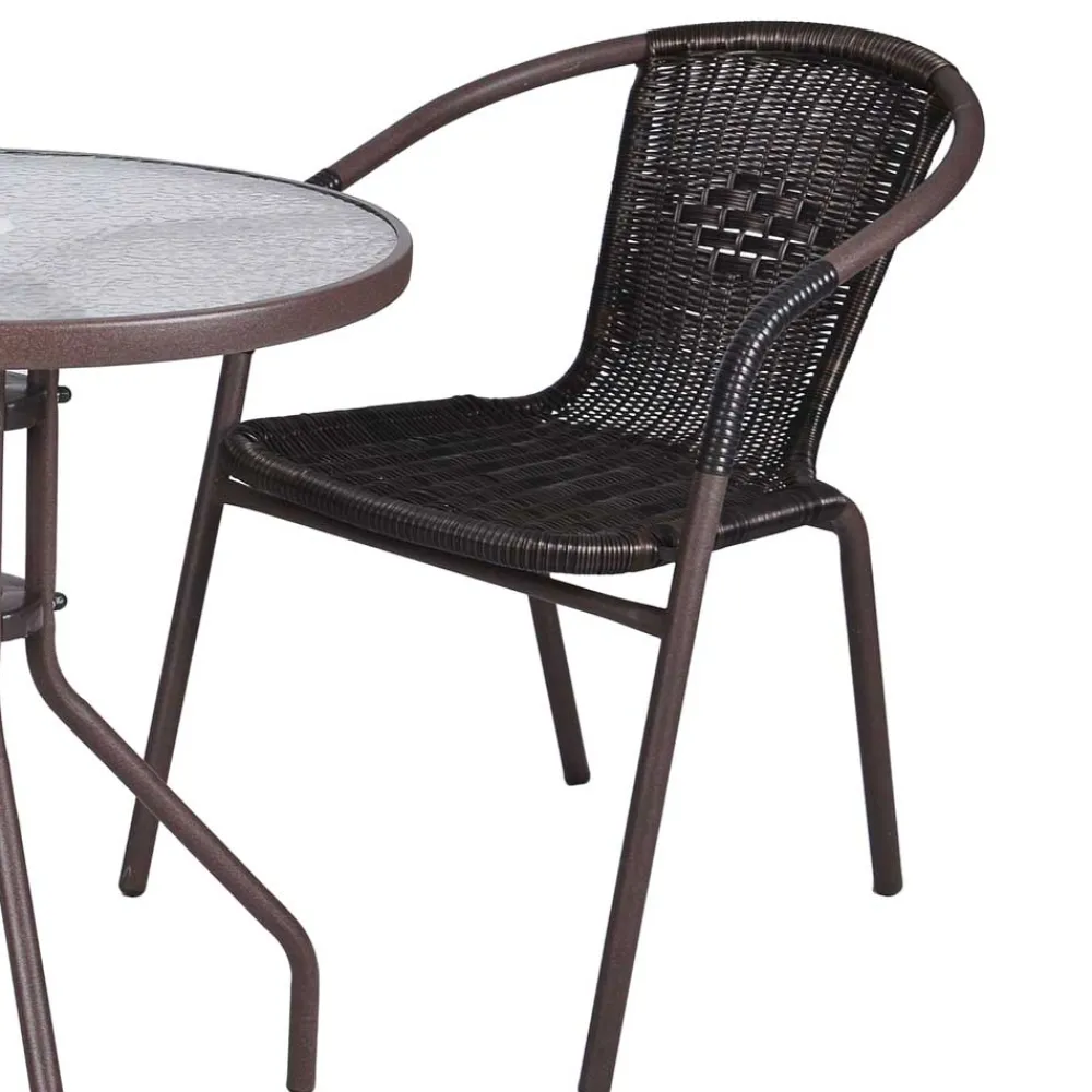 - Das braune Bistrotisch-Set passt perfekt in Ihren Landhausgarten