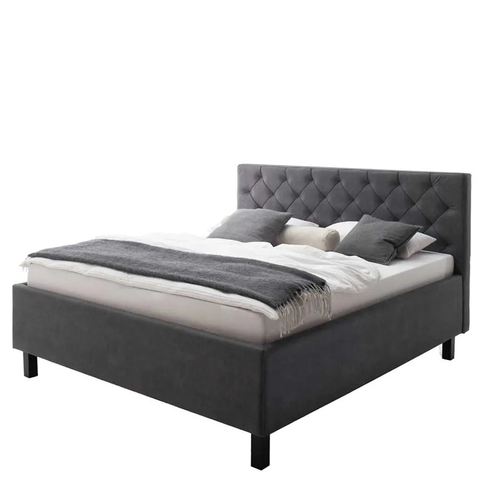 - Hochwertiges Polsterbett in Anthrazit und Schwarz