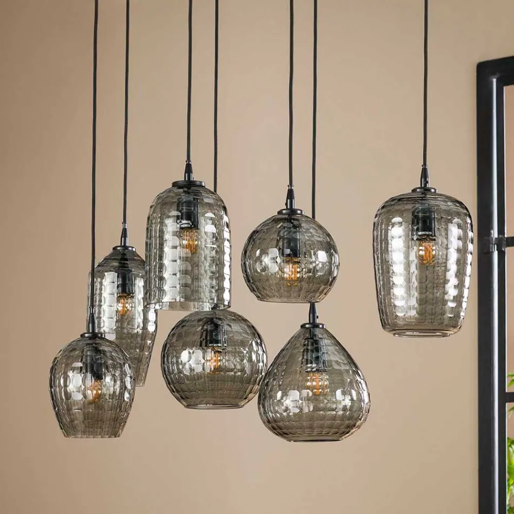 - Reliefartig strukturierte Glasschirme in unterschiedlichen Formen