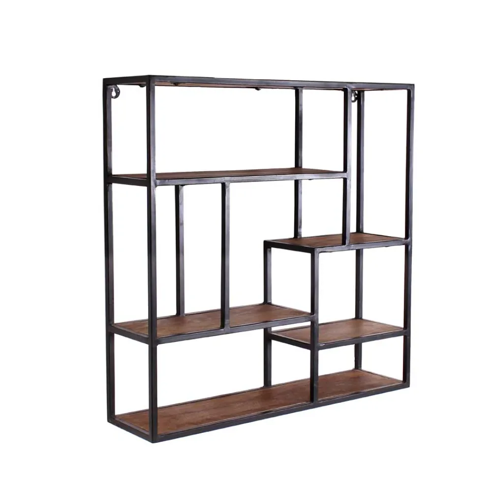 - Kompaktes Hängeregal in Schwarz und Holz Naturfarben