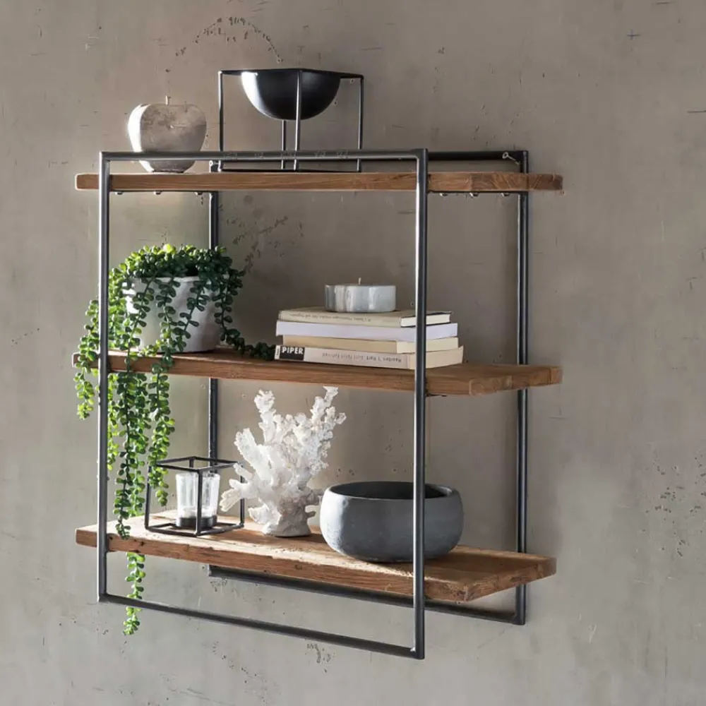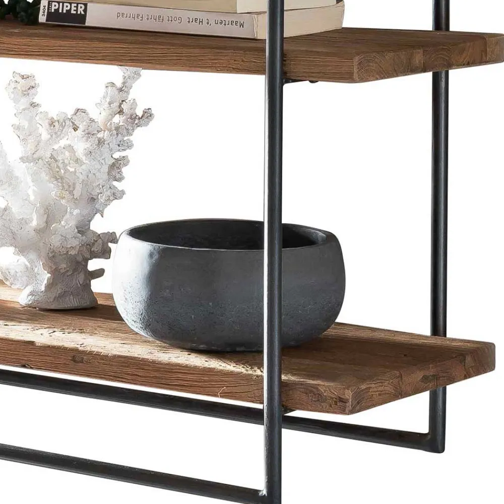 - Zwei Metallrahmen mit drei rustikalen Regalböden