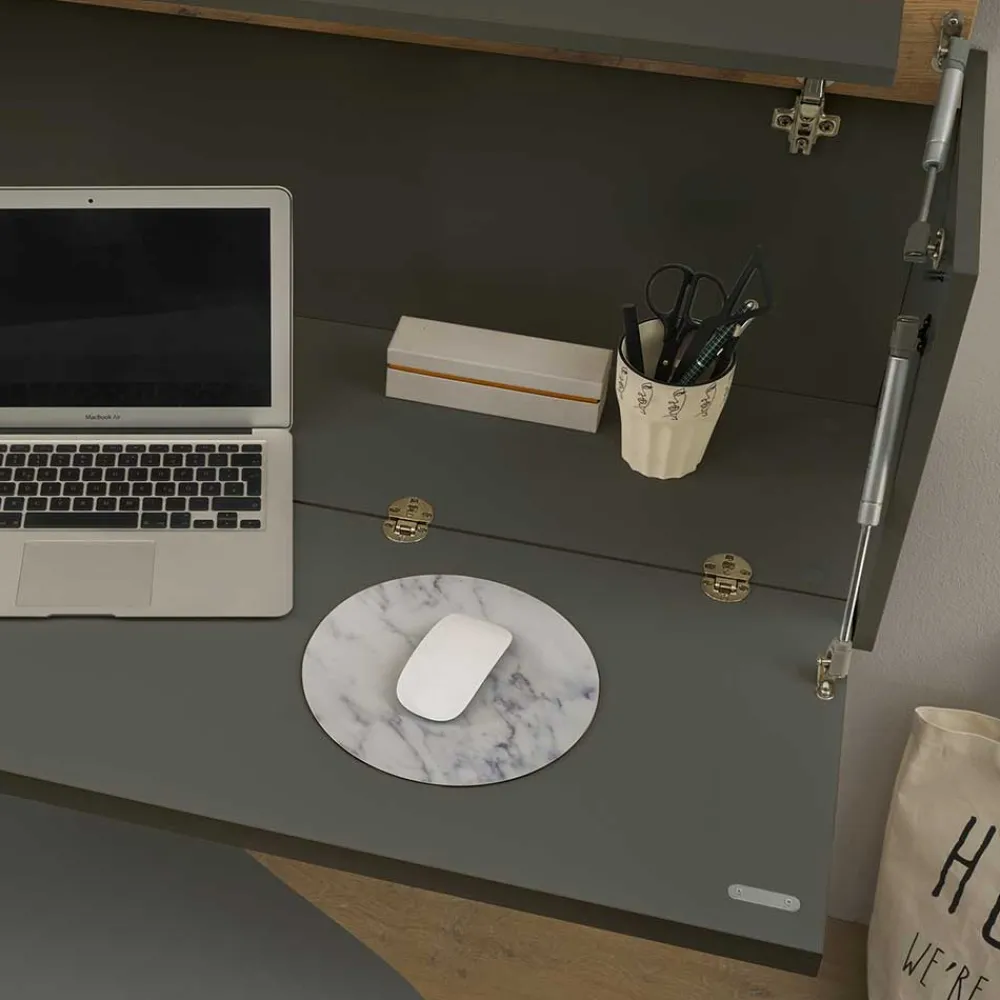 - Platzsparender Hängesekretär in Anthrazit und Wildeichefarben