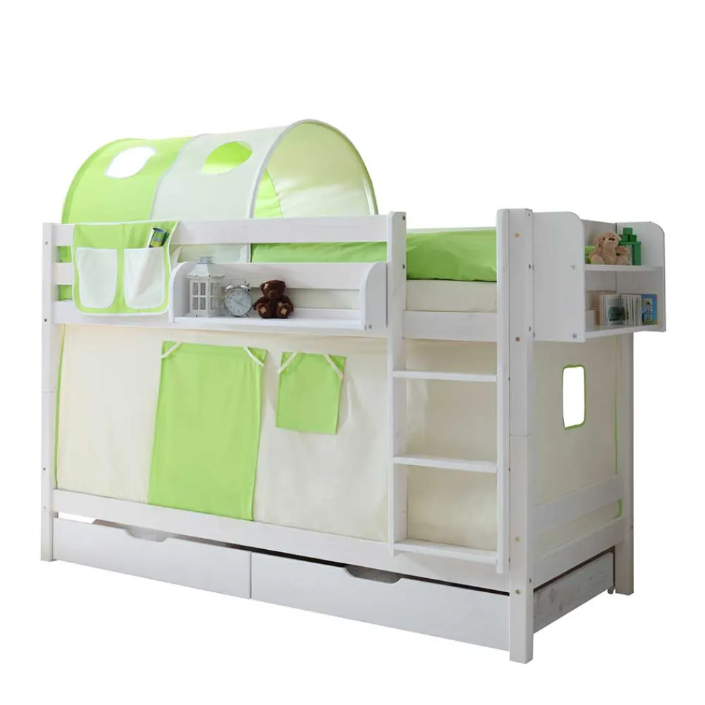 - Brillantes Etagenbett in Weiß, hell Grün und Beige