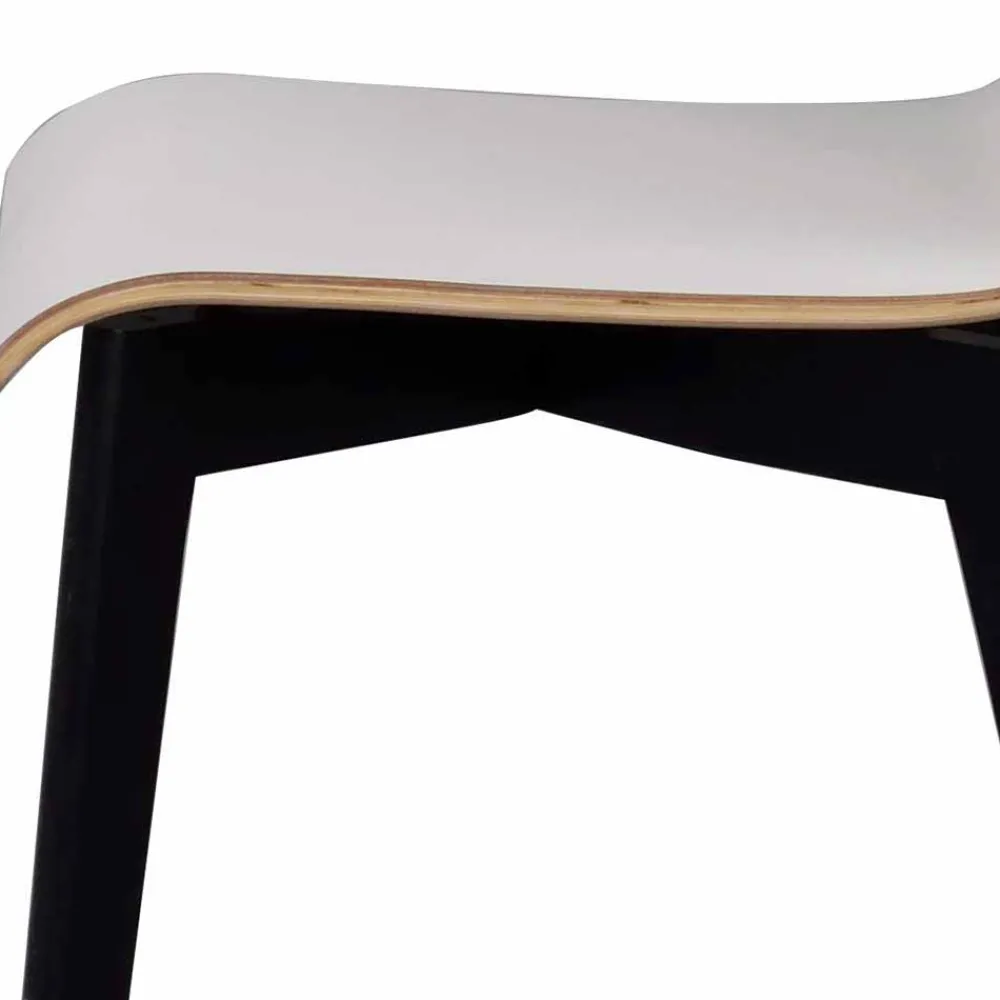 - Sitz- und Rückenoberfläche mit strapazierfähigem Hochdrucklaminat in Weiß, seitlich farblich abgesetzt, Gestell aus Eiche Massivholz, Schwarz gebeizt und lackiert
