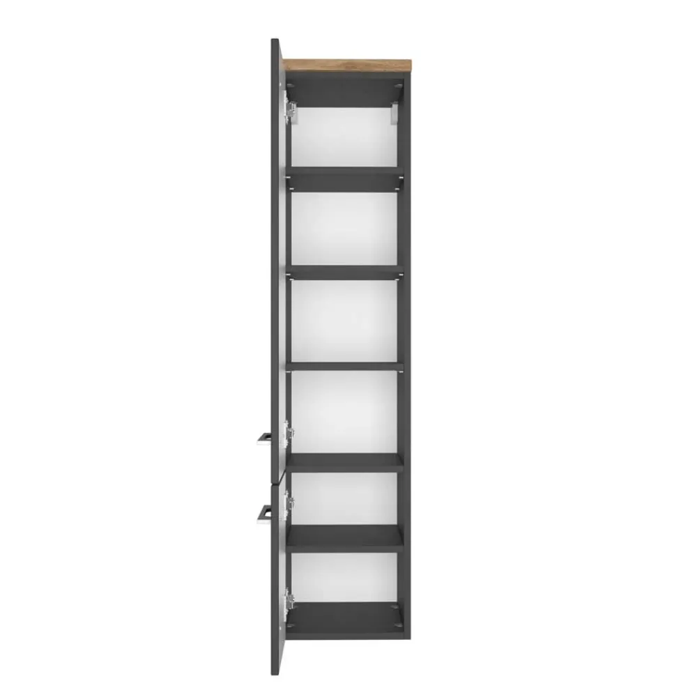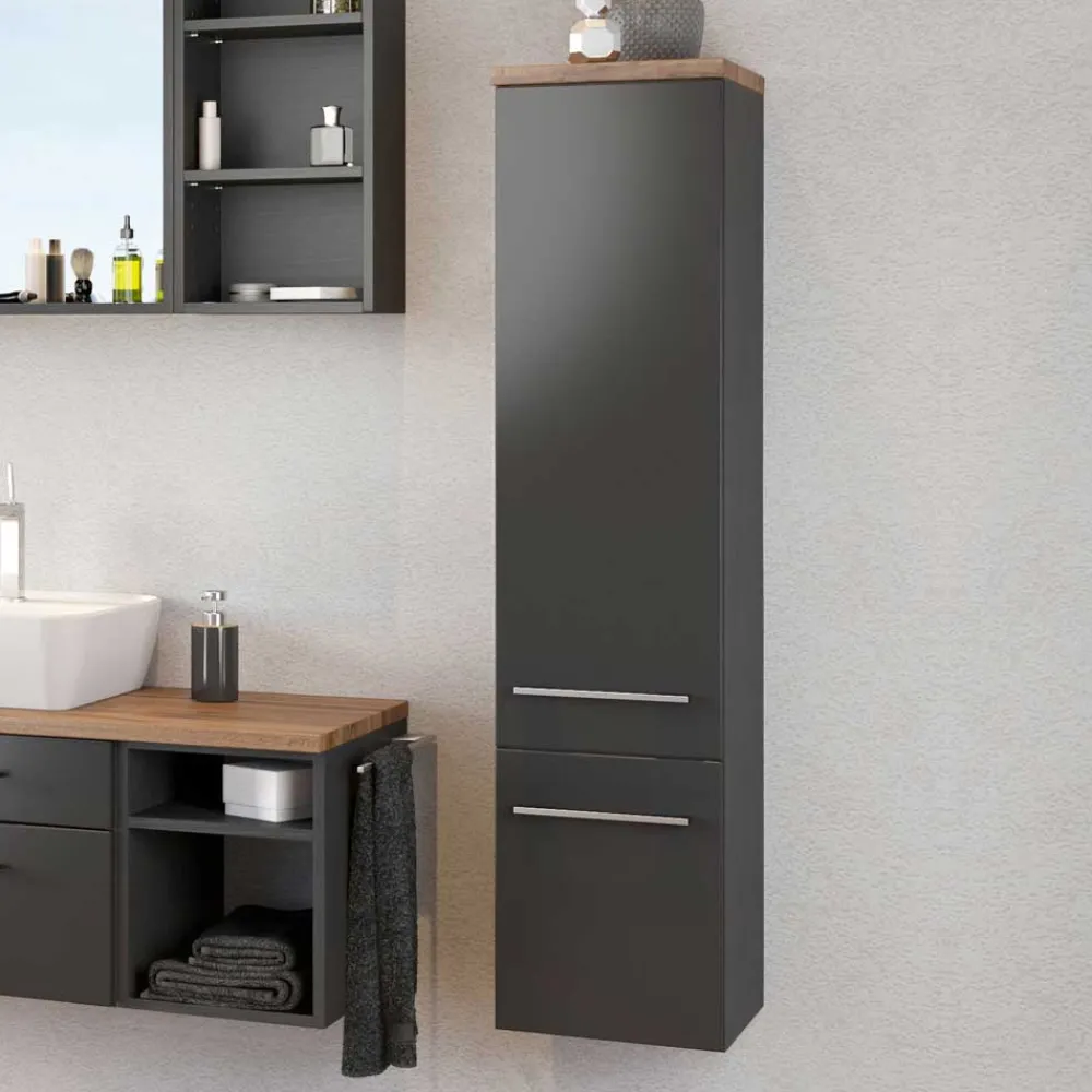 - Eleganter Bad Midischrank in dunkel Grau und Wildeichefarben