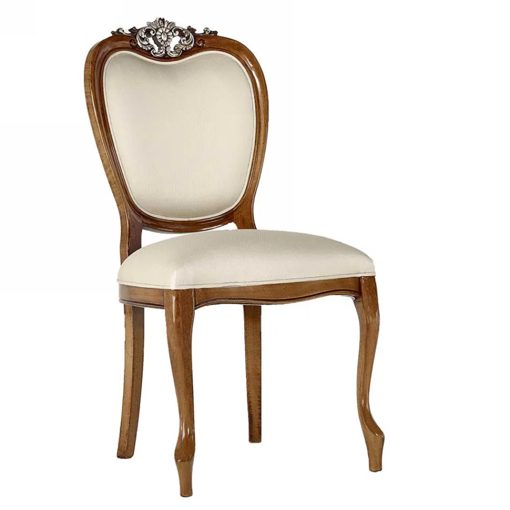 - Rückenlehne in Medaillonform mit silberfarbig lackierter Schnitzerei