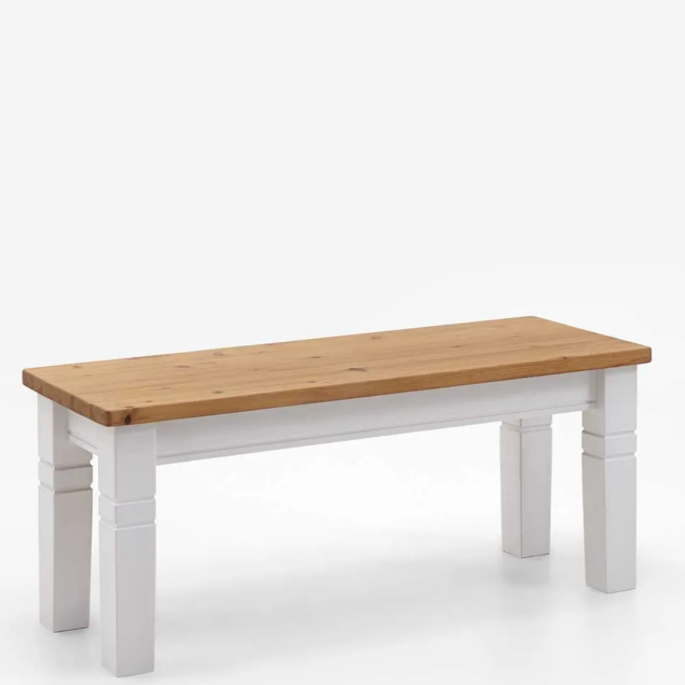 - Wohnliche Sitzbank in Kiefer Laugenfarben und Weiß
