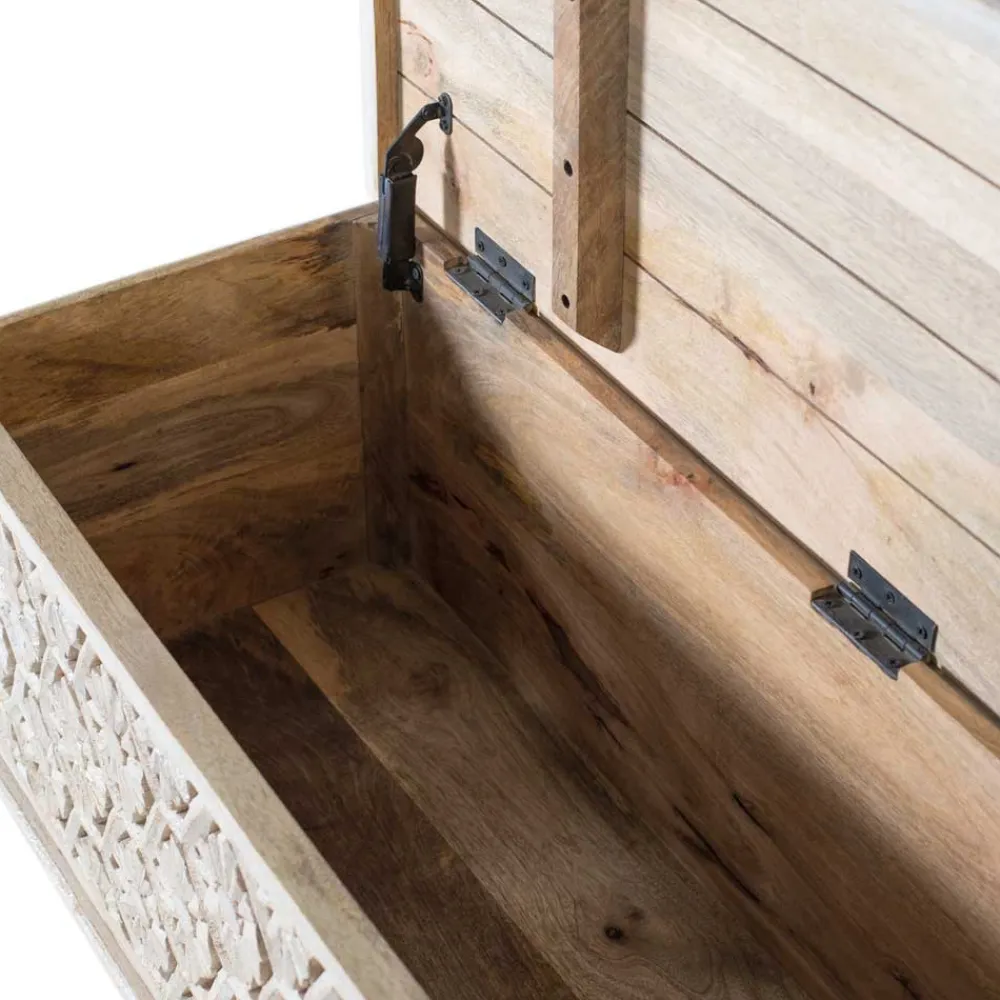 - Flacher Truhendeckel mit stabilen Metallscharnieren