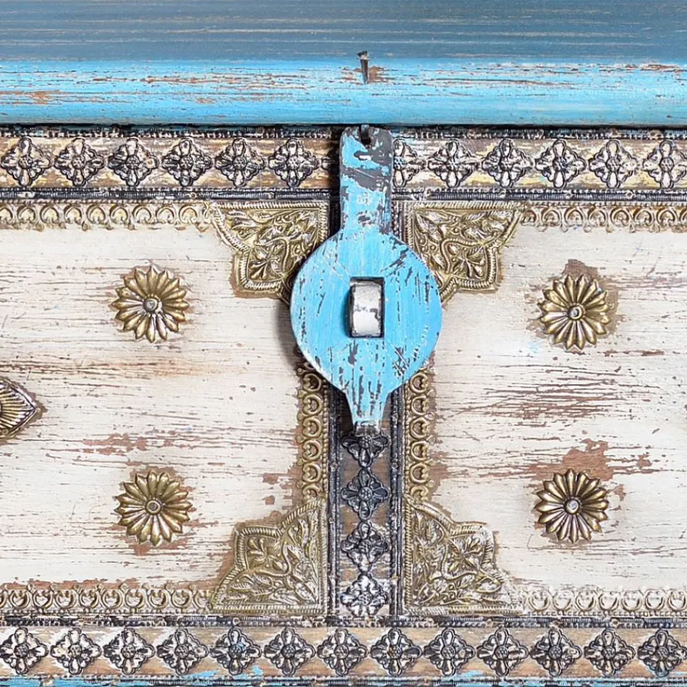 - Hübsche Truhe in Blau, Antikweiß und Bronzefarben