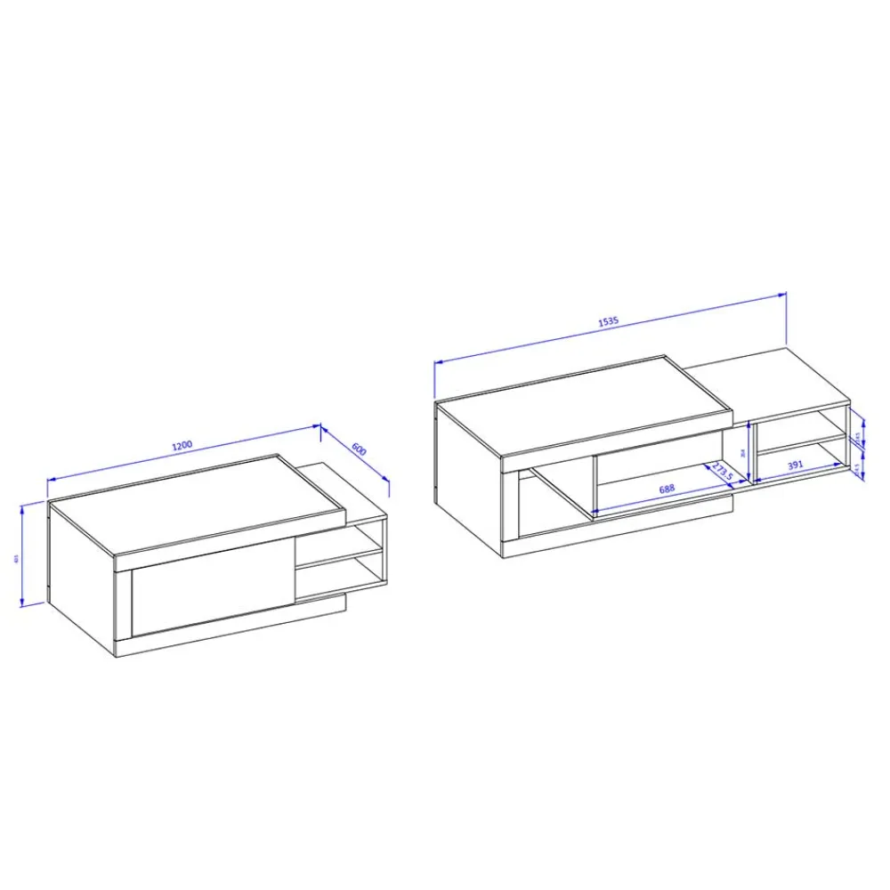 - Lässt sich praktisch von 120 auf 154 cm ausziehen, dadruch entstehen drei zusätzliche Ablageflächen