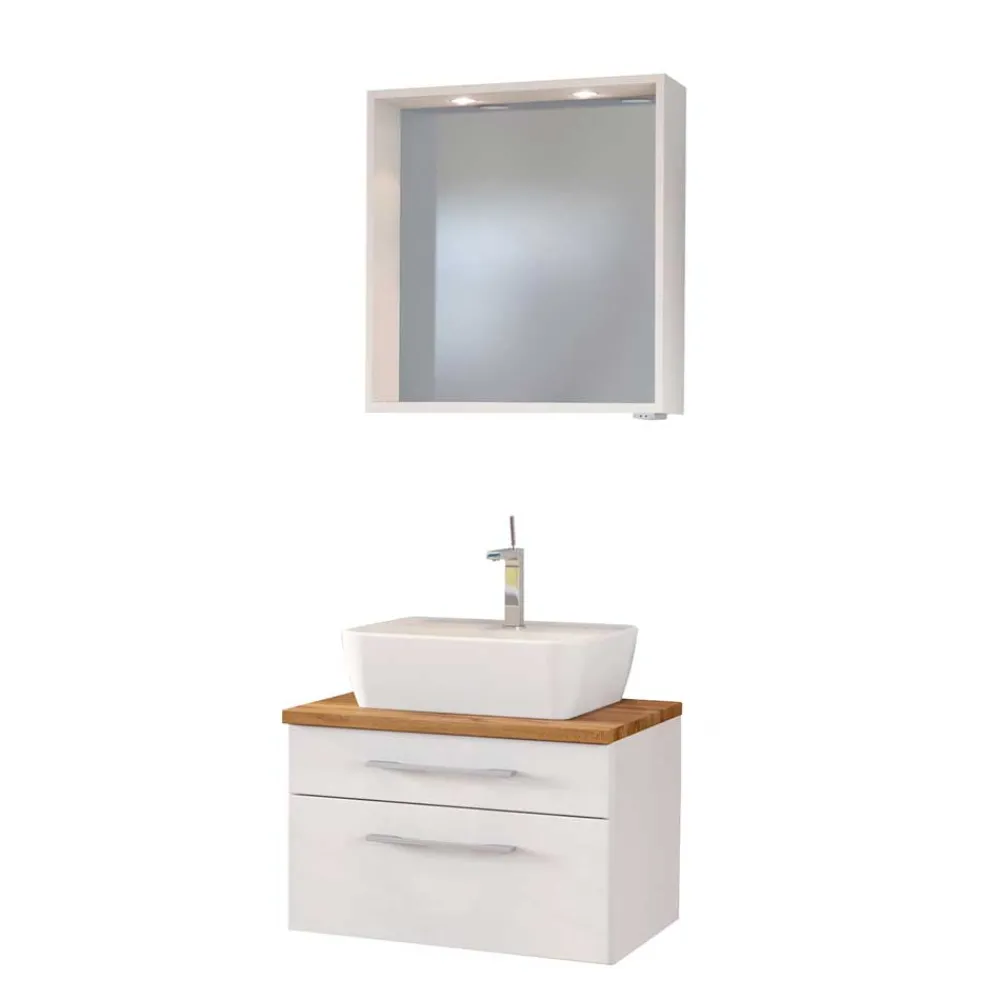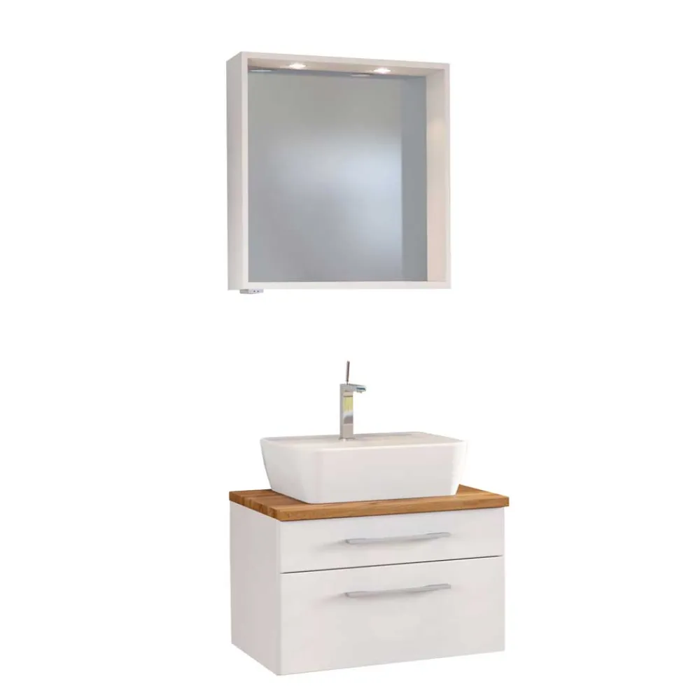 - Klasse Badmöbel Set in Weiß und Wildeichefarben