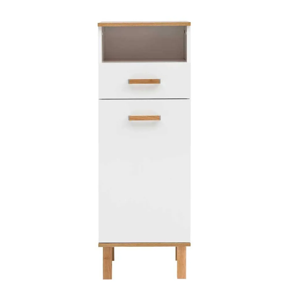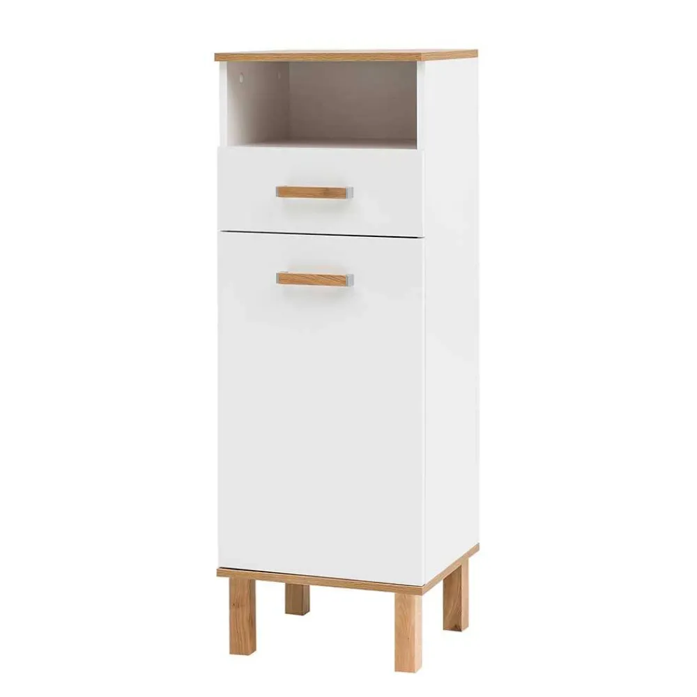 - Attraktiver Bad Midischrank in Weiß und Eichefarben