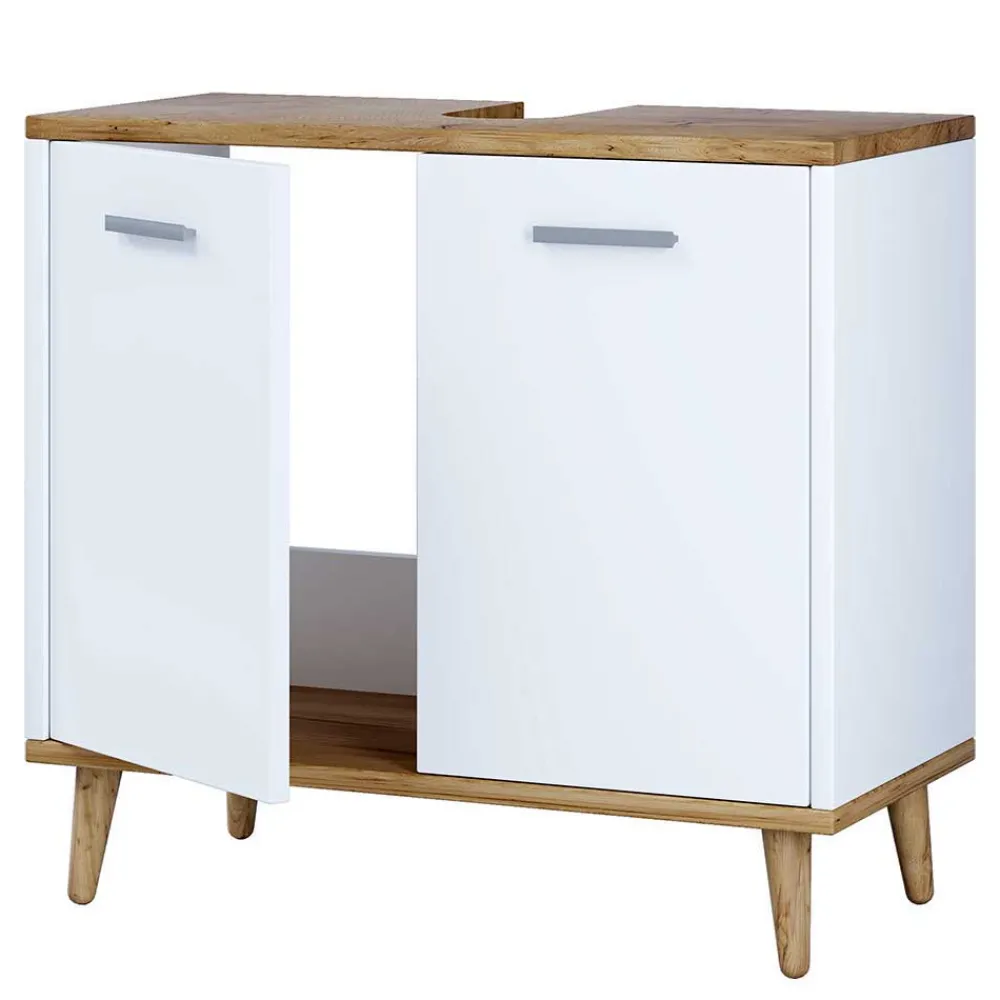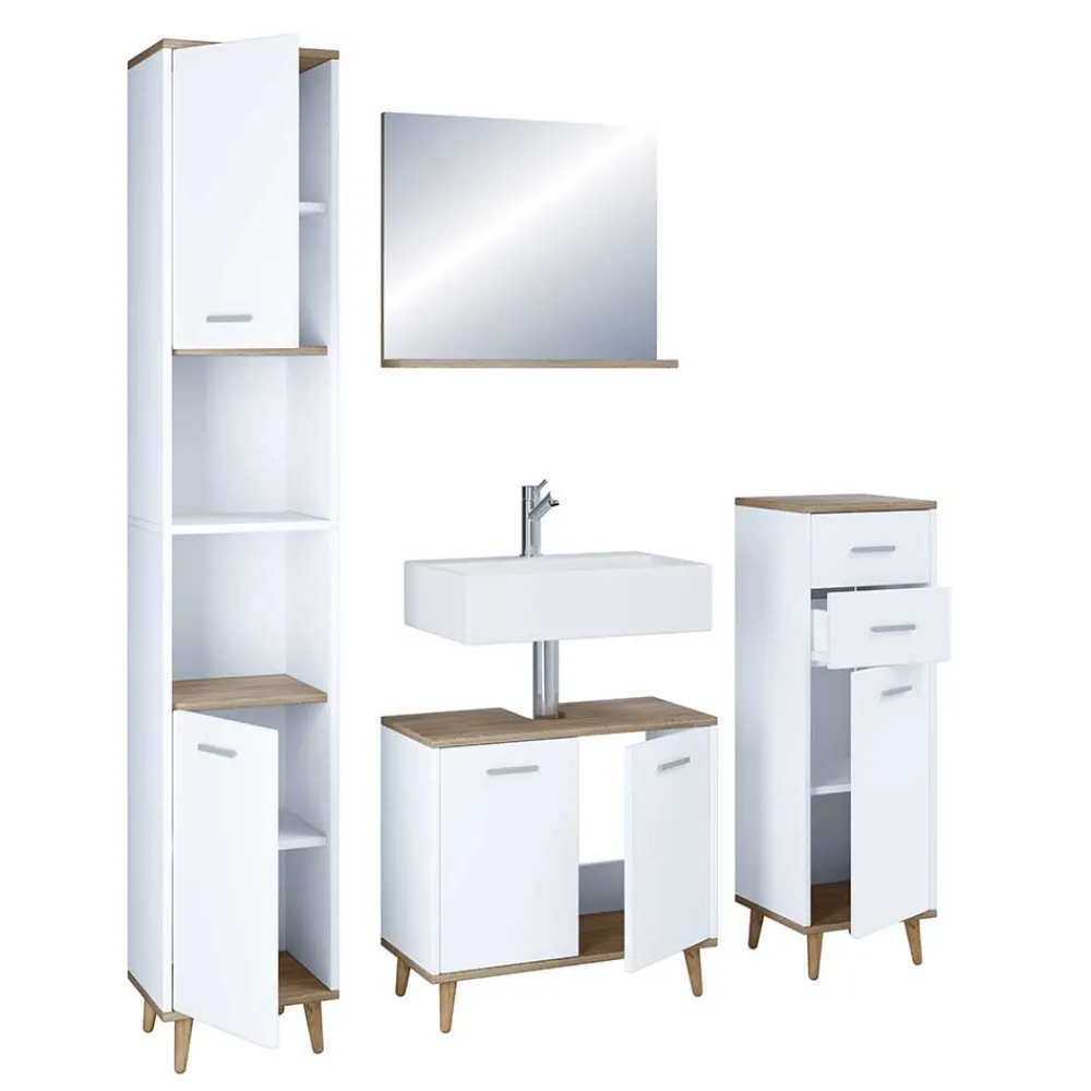 - Ideales Badezimmer Set in Weiß und Wildeiche Honigfarben