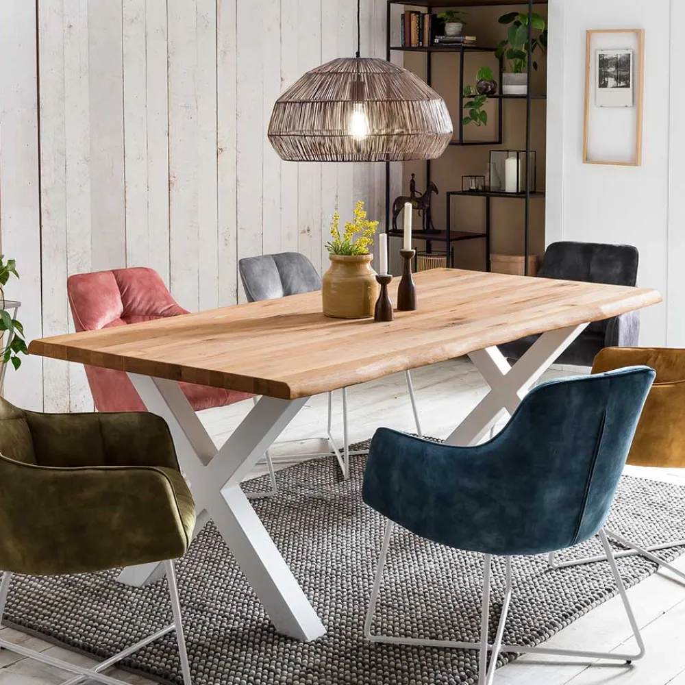 - Holzoberfläche natürlich geölt, Metall in Weiß pulverbeschichtet