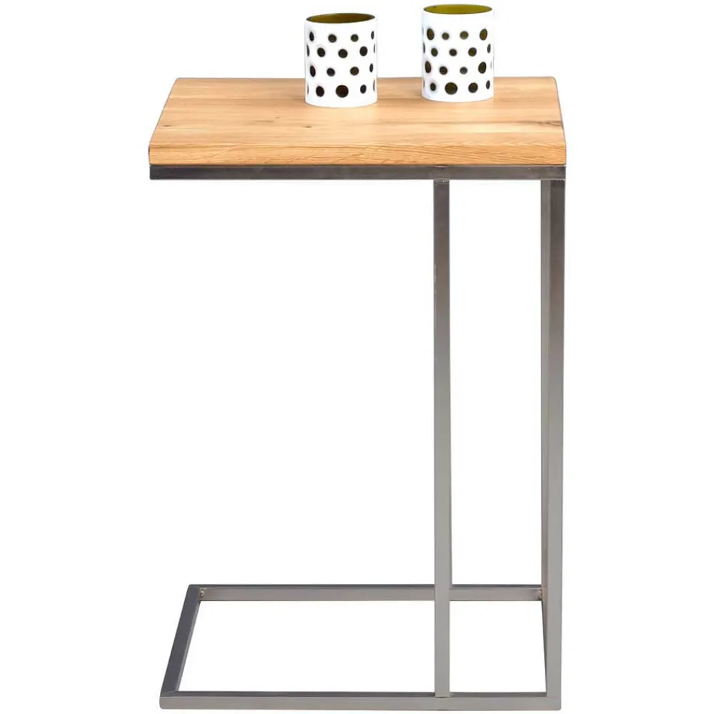 - Stilvoller Beistelltisch in Wildeiche und Silberfarben