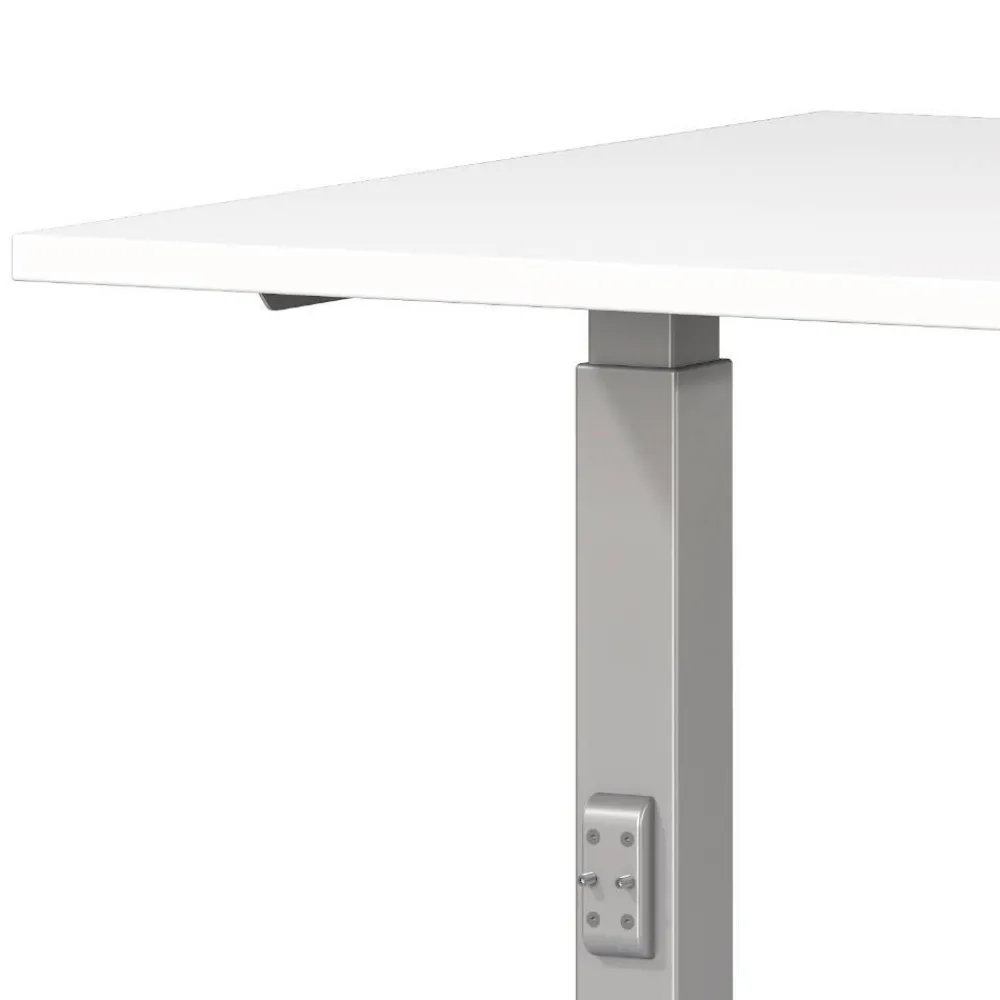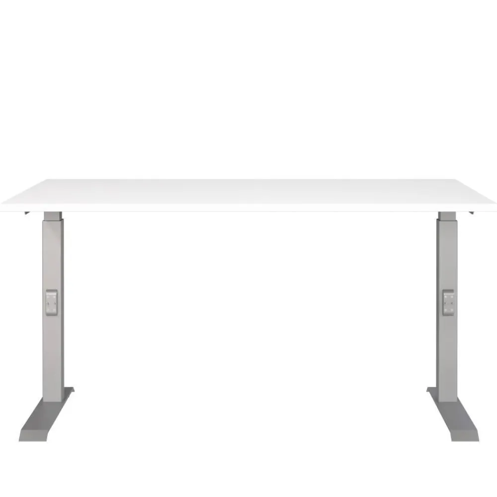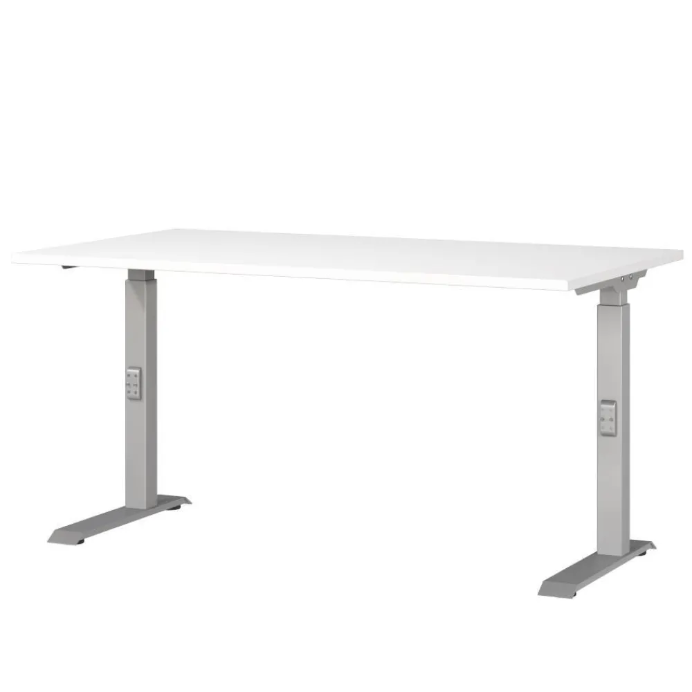 - Silberfarbig pulverbeschichtetes Gestell in T-Form mit nivellierbaren Kunststoff Bodengleitern