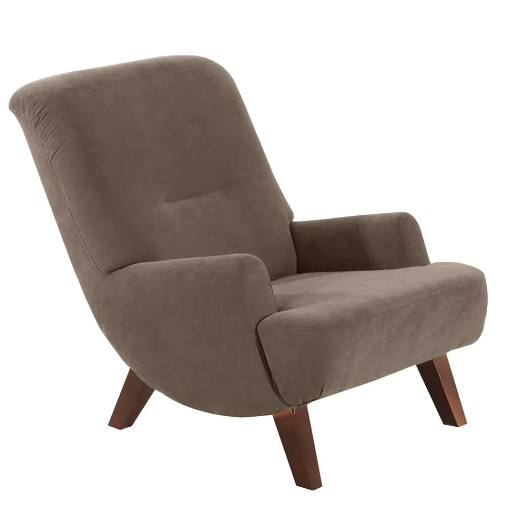 - Schicker Sessel in Beigegrau und Nussbaumfarben