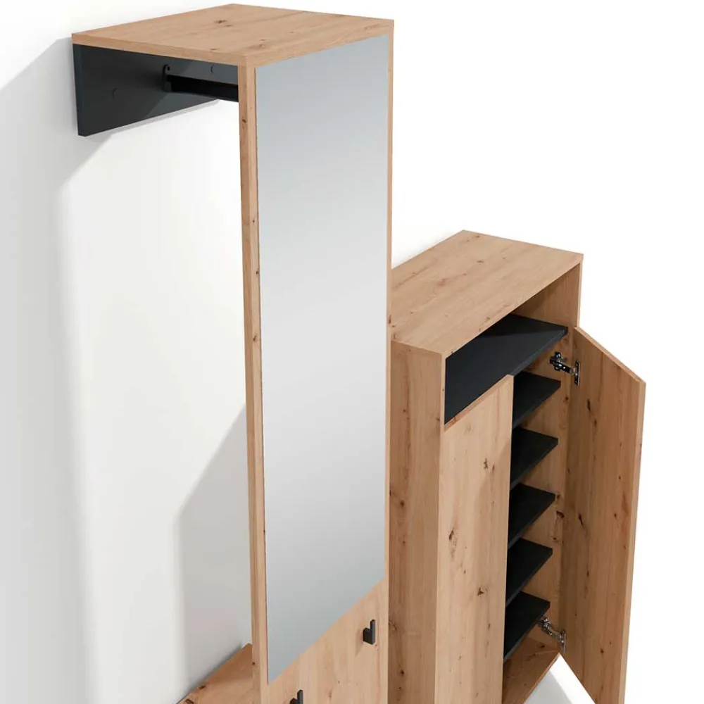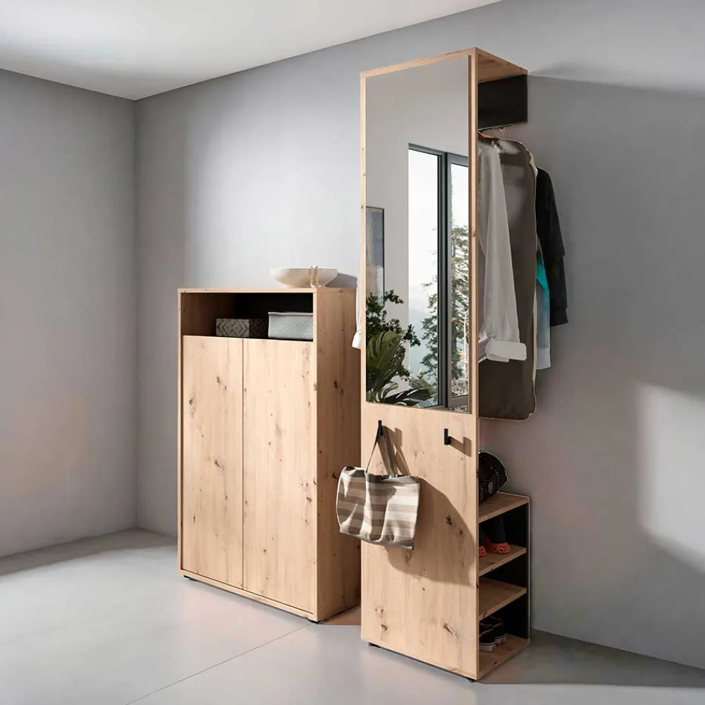 - Kompakte Garderobenmöbel in Wildeichefarben und Schwarz