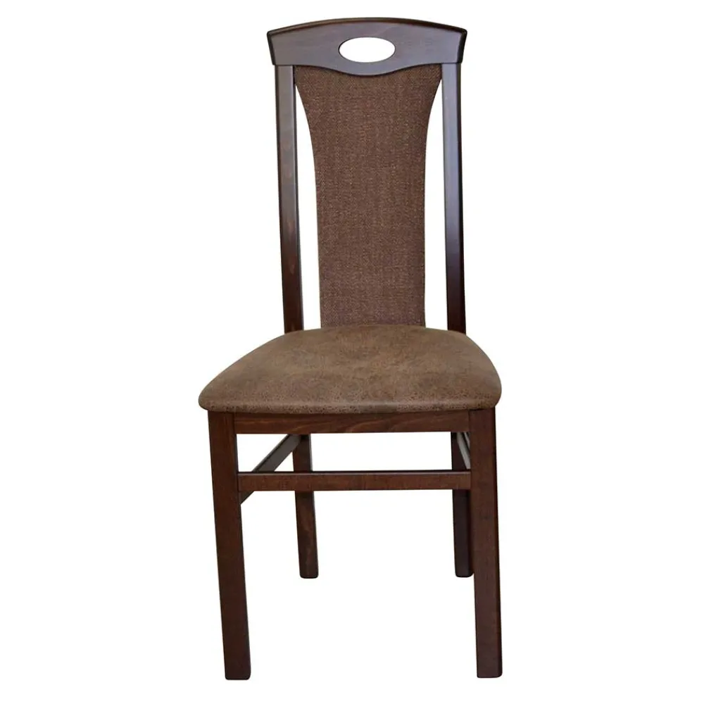 - Schlichte Esszimmerstühle in Nussbaumfarben und Braun