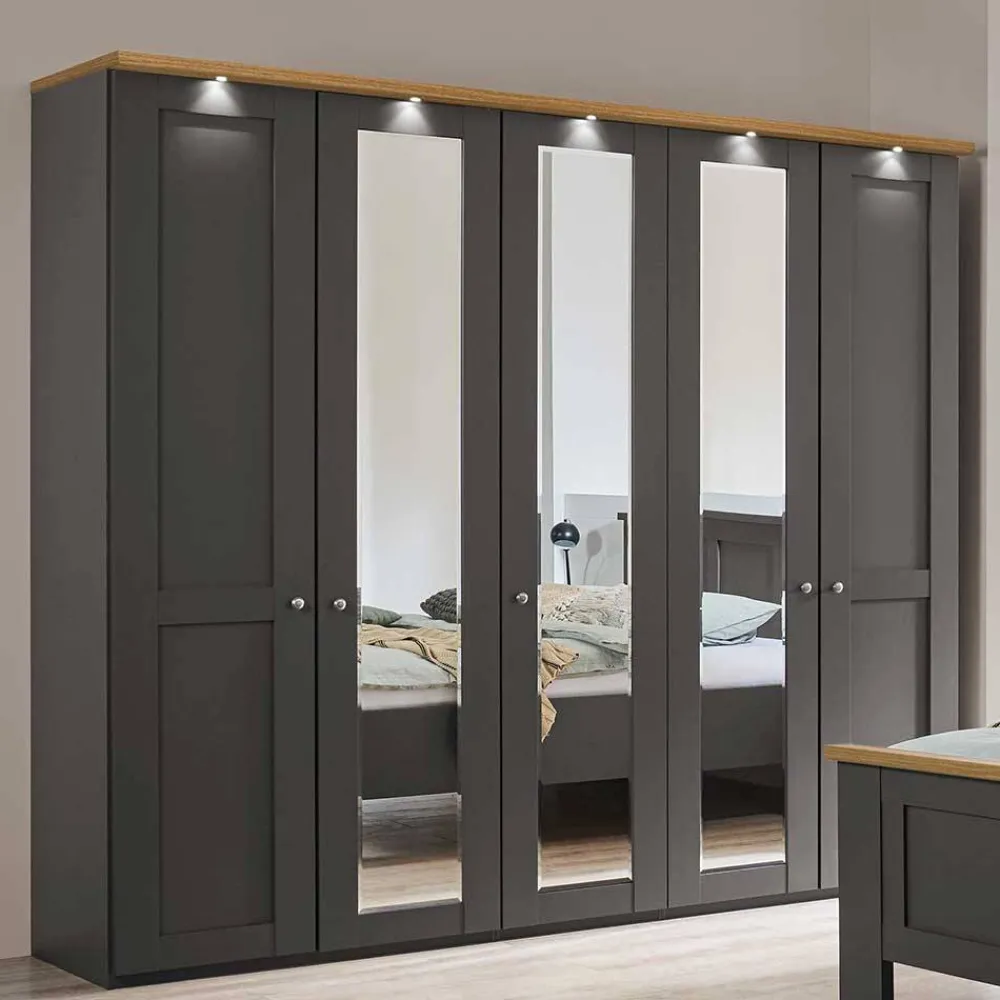 - Ausgezeichneter Kleiderschrank in Dunkelgrau und Eiche Bianco