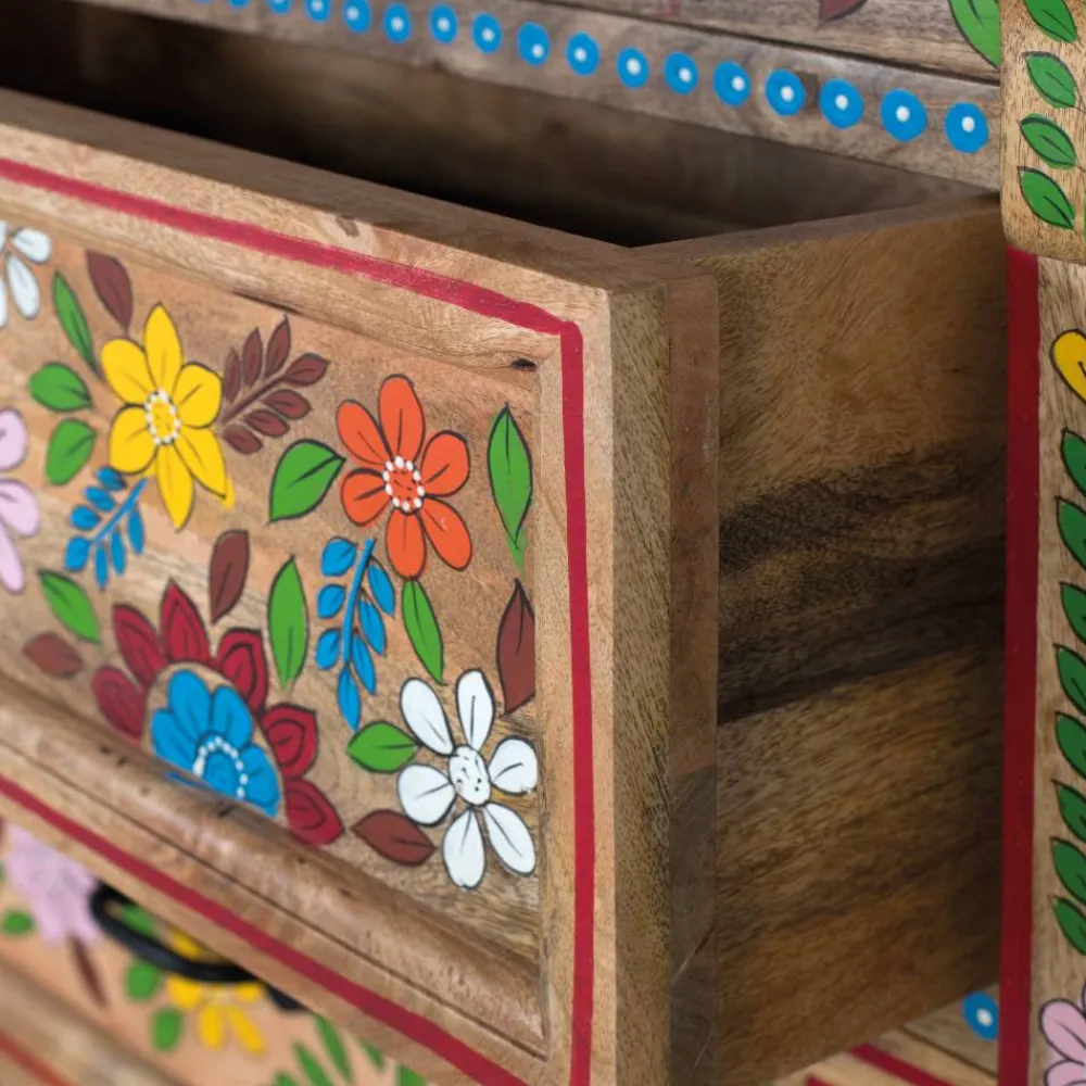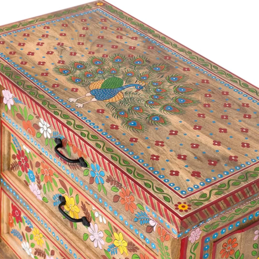 - Attraktive Folklore Kommode in Mangoholz Naturfarben und Bunt