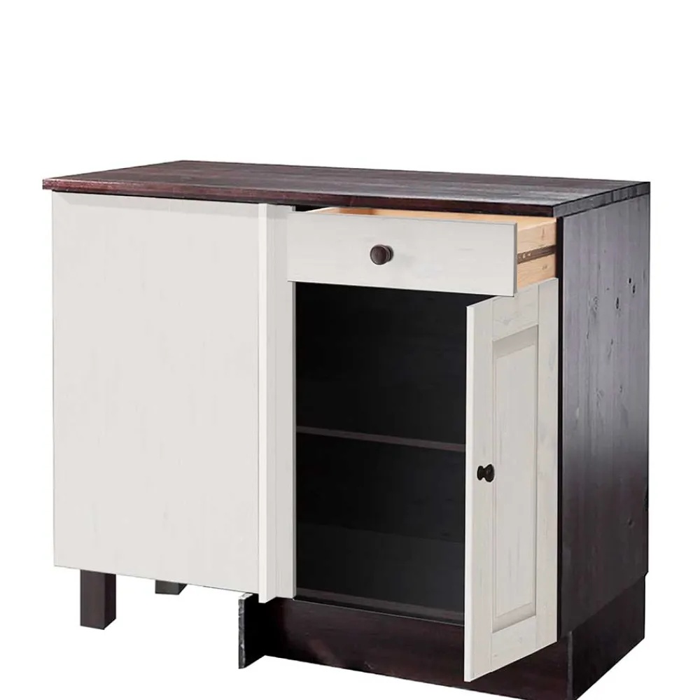 - Solider Küchenunterschrank in Weiß und Dunkelbraun