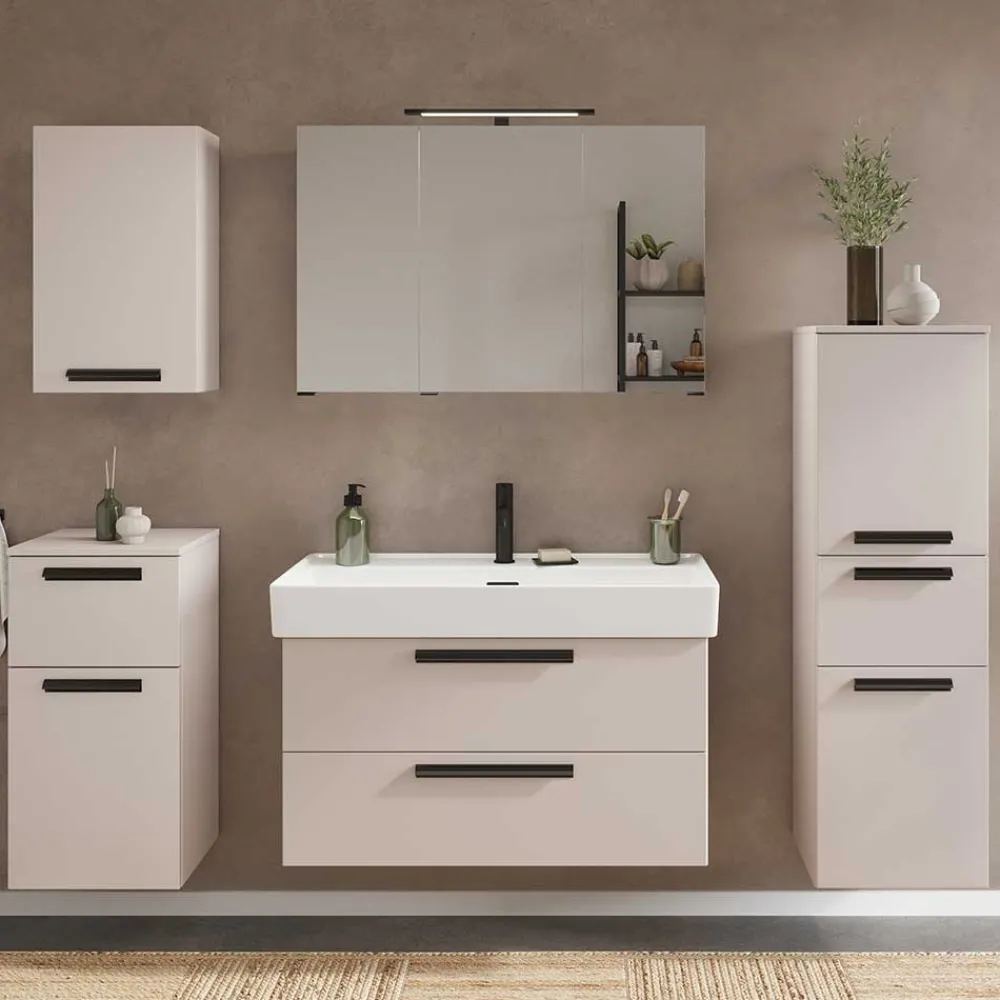- Korpus Oberflächen außen hellgrau, innen weiß foliert, Kanten tiefgezogen