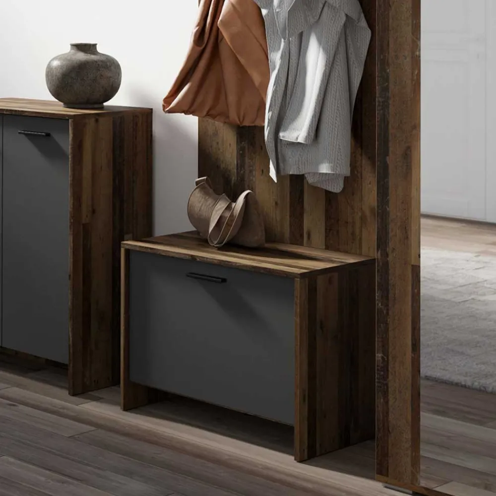 - Trendstarke Garderobenbank in Altholzoptik und Anthrazit