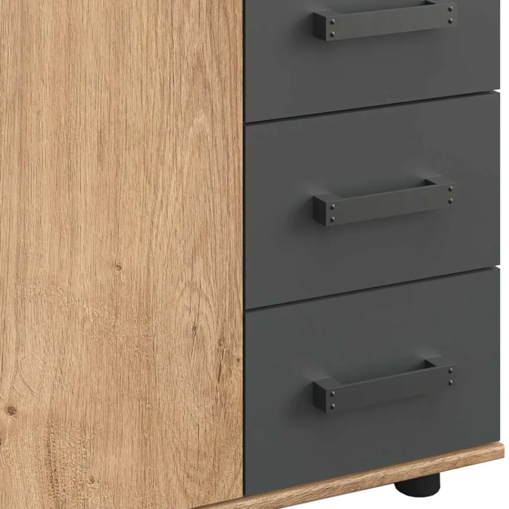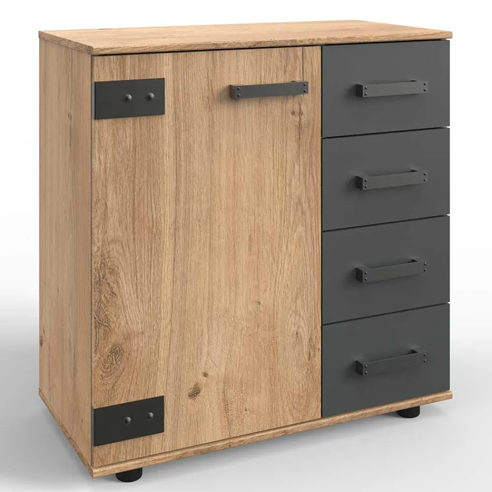 - Vielseitige Kommode in Plankeneiche Holzoptik und Dunkelgrau