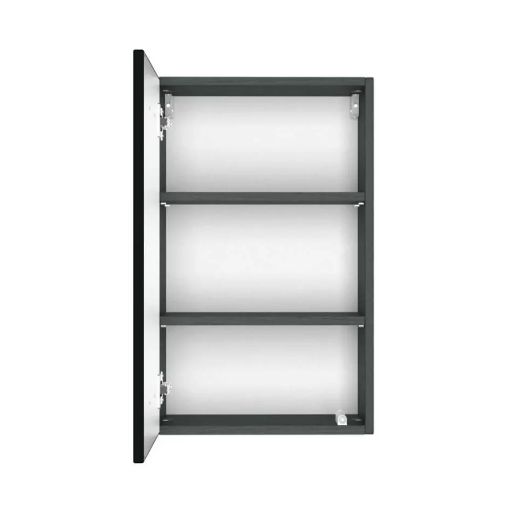 - Pflegeleichte Oberflächen, Front in matt Grau foliert, Korpus in Dunkelgrau melaminbeschichtet