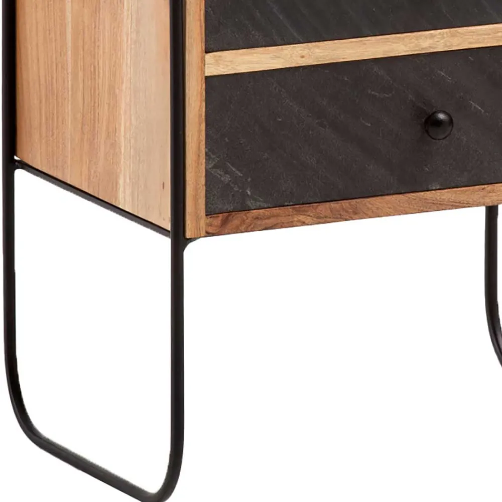 - Aktueller Boxspringbett Nachttisch in Schwarz und Akaziefarben