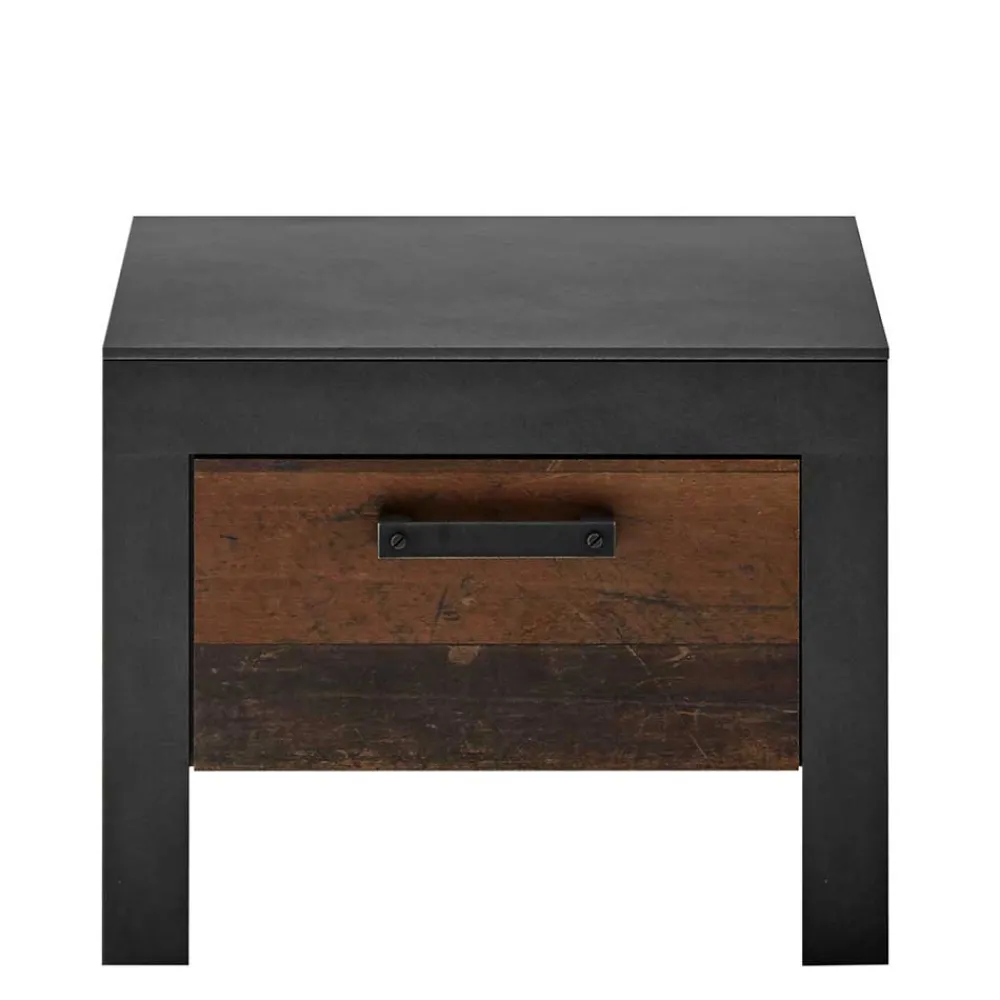 - Trendige Nachtkommode in Dunkelgrau und Altholz Optik