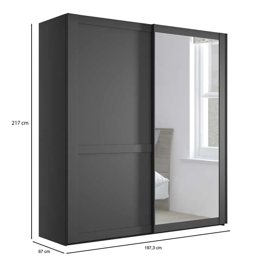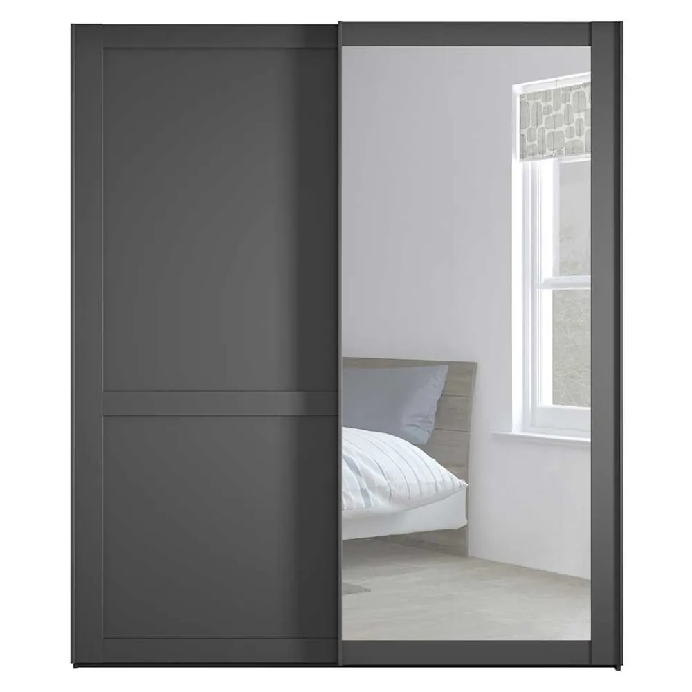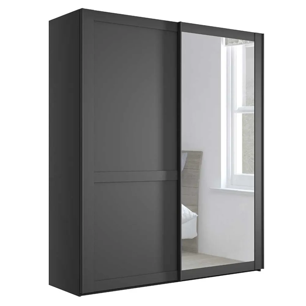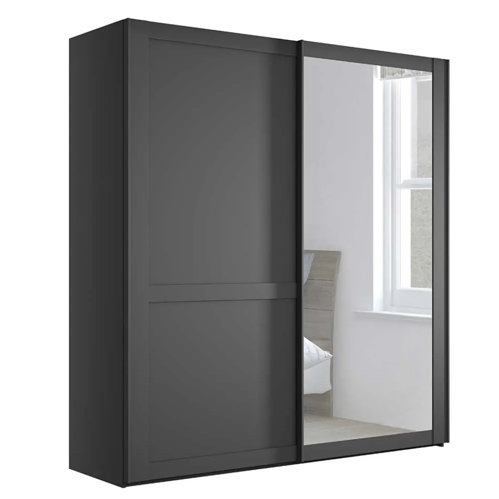 - Unempfindliche, folierte Oberflächen in Dunkelgrau, Innendekor in hellgrauer Holzoptik