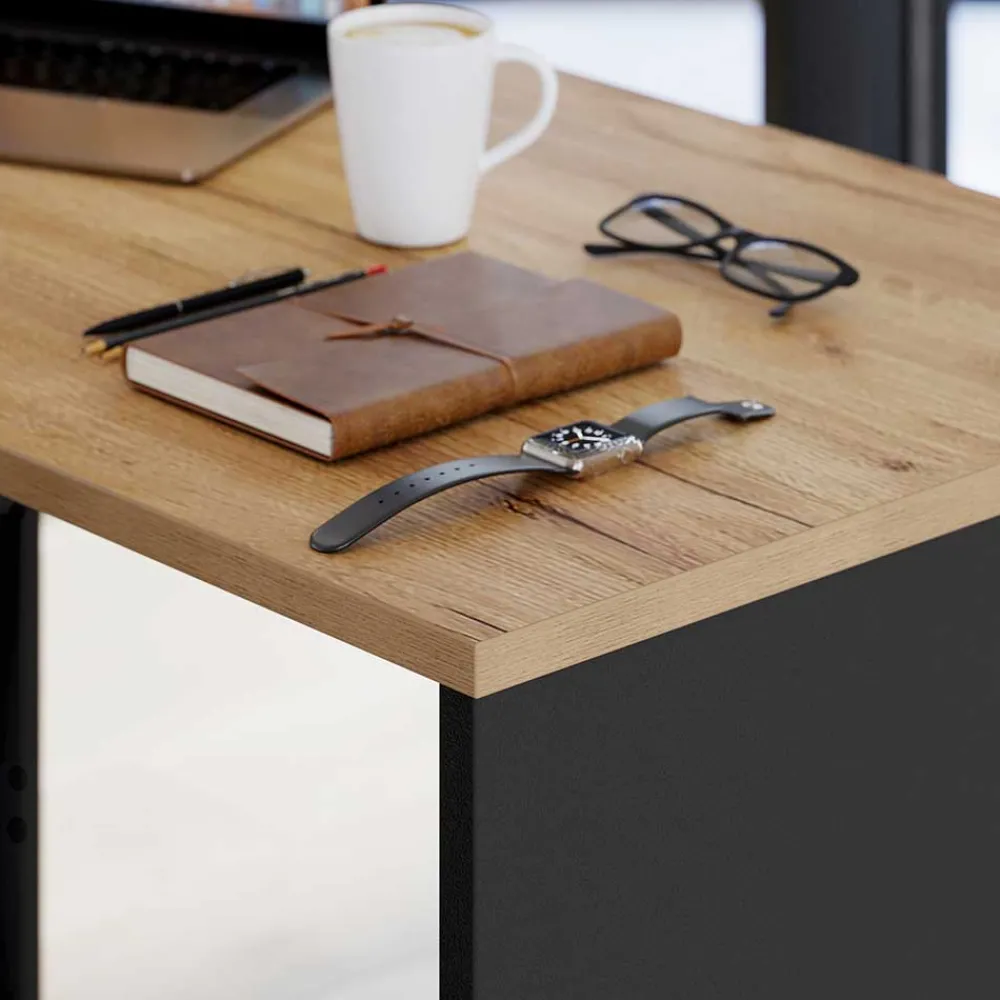 - Hervorragender Eckschreibtisch in Anthrazit und Wildeichefarben