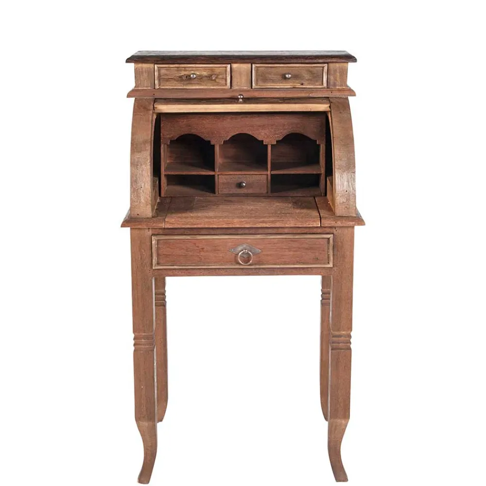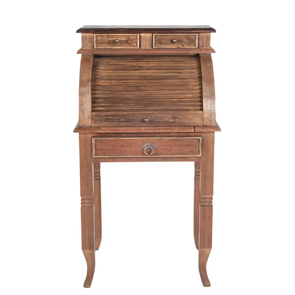 - Hinter der Jalousie befinden sich fünf kleine Fächer, eine kleine Schublade und eine ausziehbare Schreibfläche