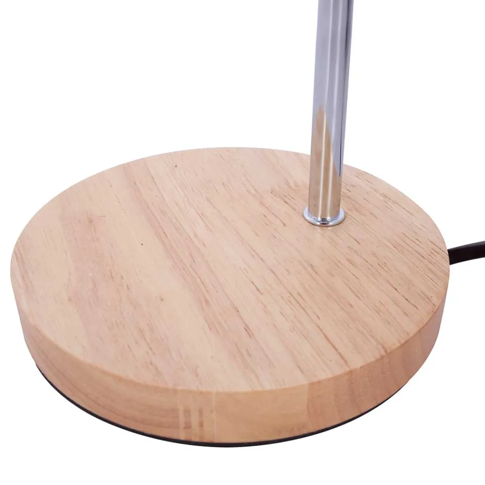 - Design Tischlampe in Chrom und Holz Naturfarben