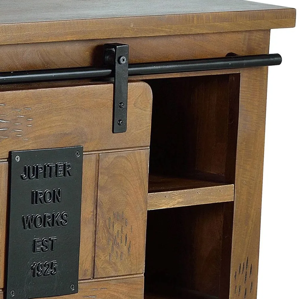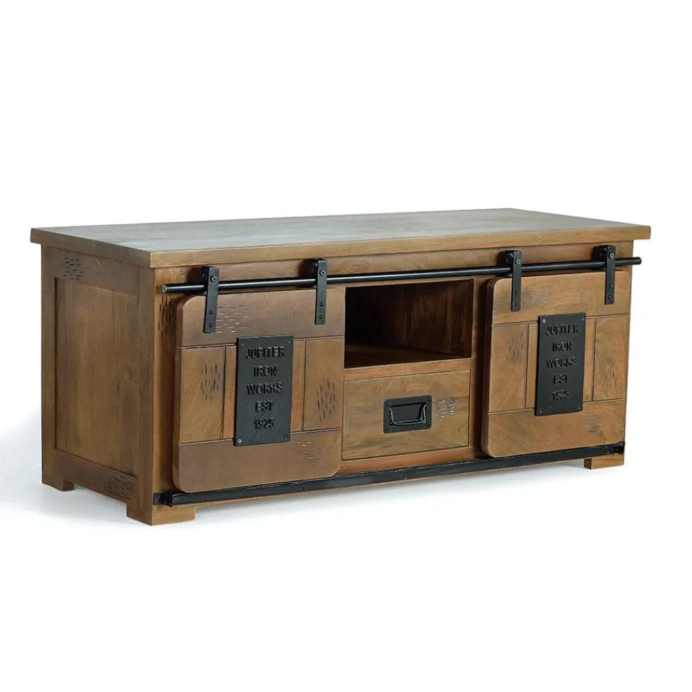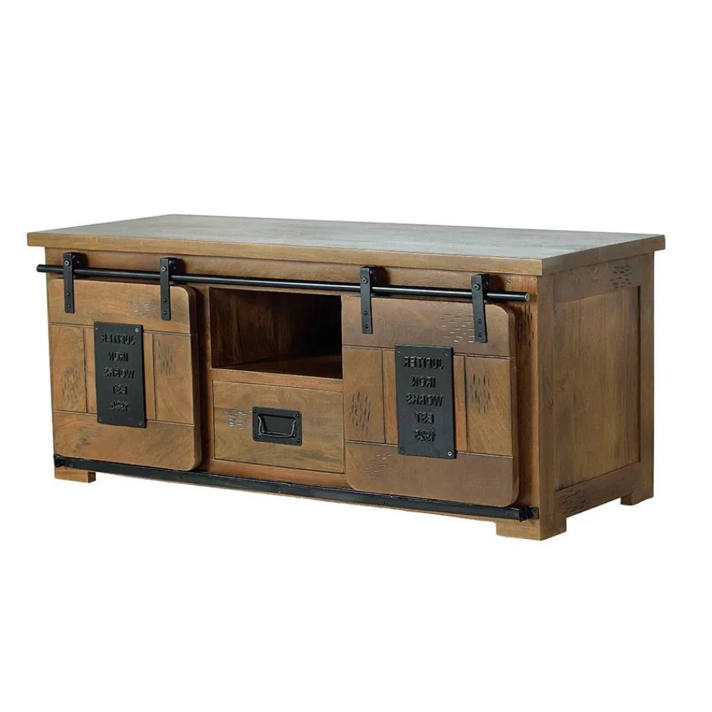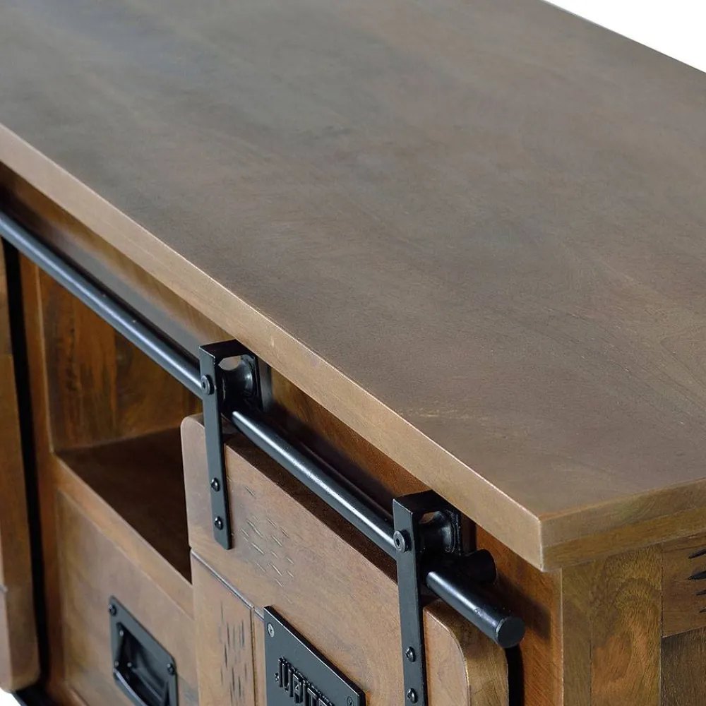 - Kompaktes TV Lowboard in Mangoholz Naturfarben und Schwarz