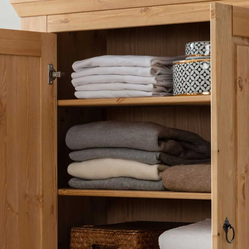- Dekorativer Landhaus Wäscheschrank in Eichefarben