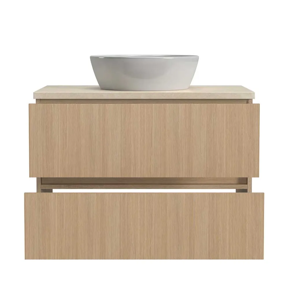 - Erstklassiger Waschtischschrank in Eiche hell und Beige