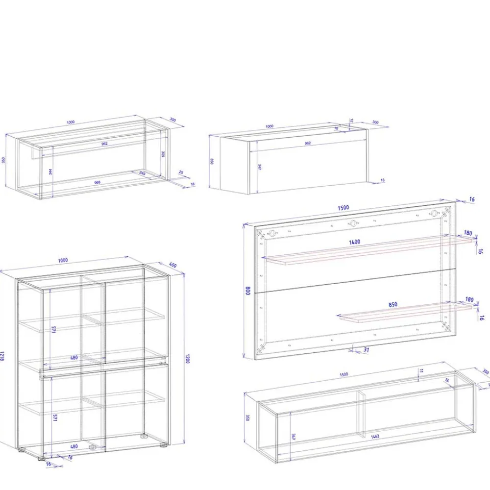 - Maximale Belastbarkeit: Einlegeböden je 5 kg, Oberboden 25 kg