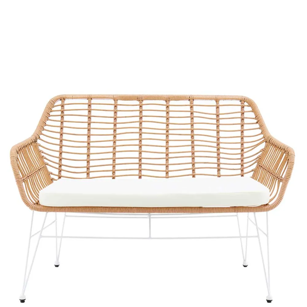 - Attraktive In- und Outdoorbank in Beige und Weiß