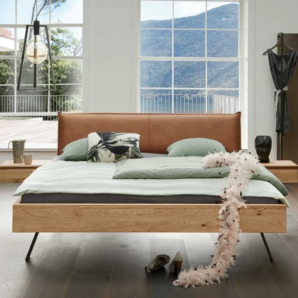 - Schaumstoffgepolstertes Kopfteil in Kissenoptik, Bezug aus Recyclingleder (70 % Leder, 30 % Polyester) in Braun