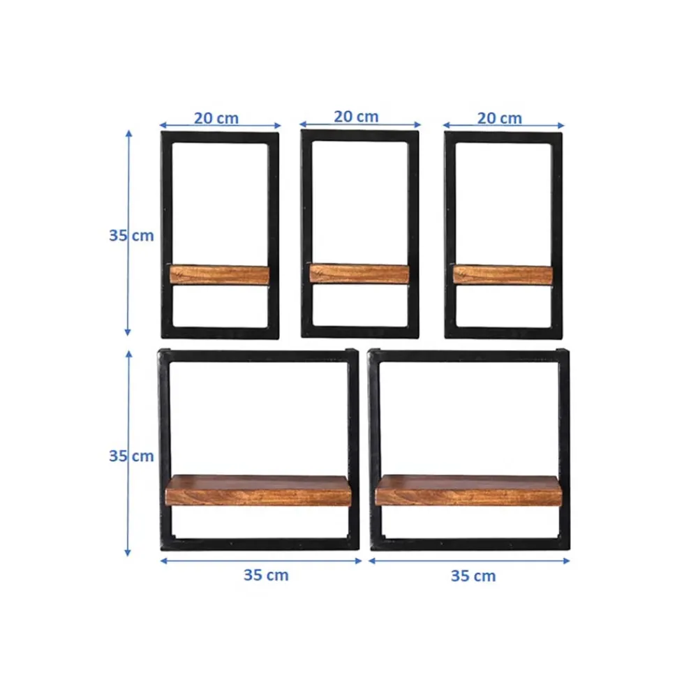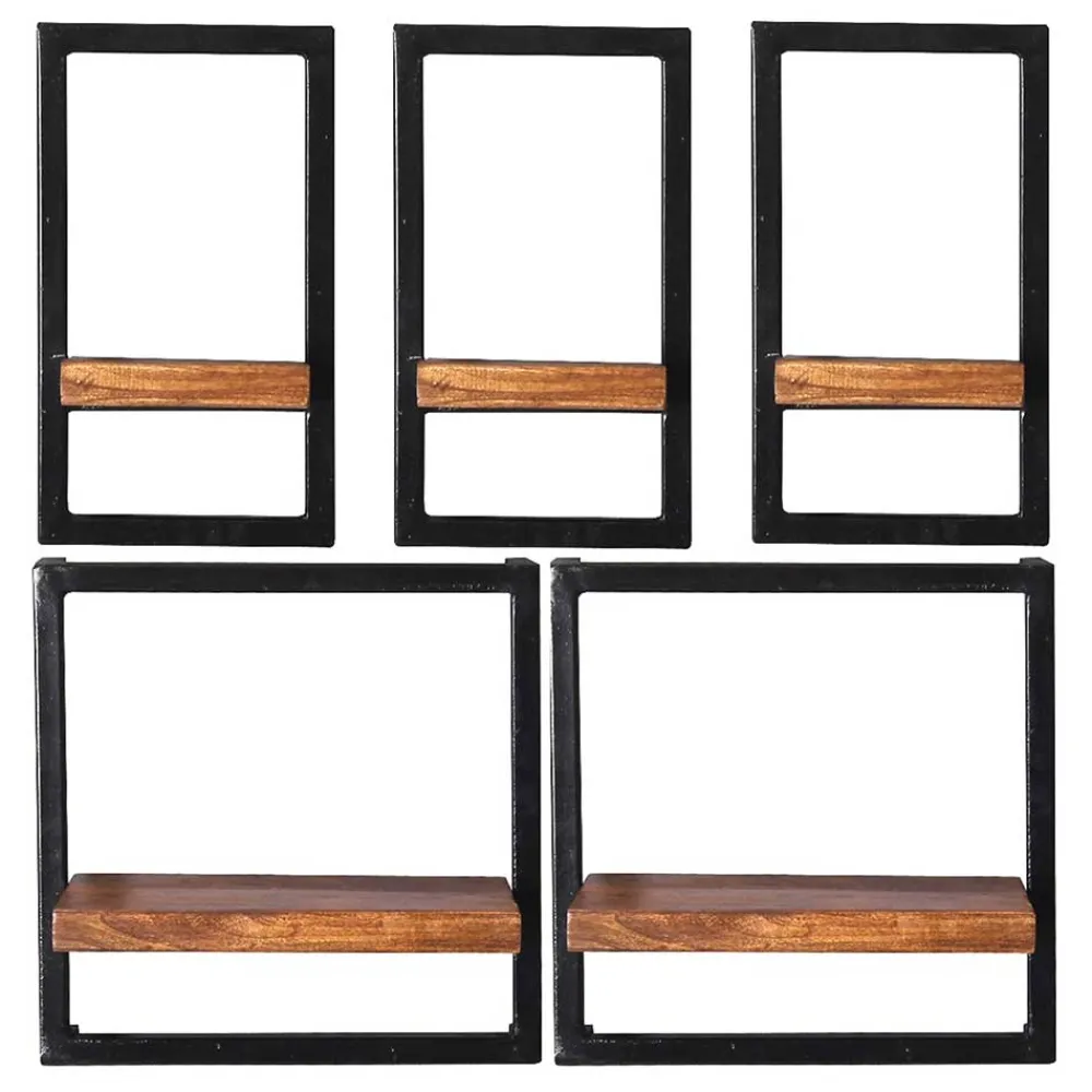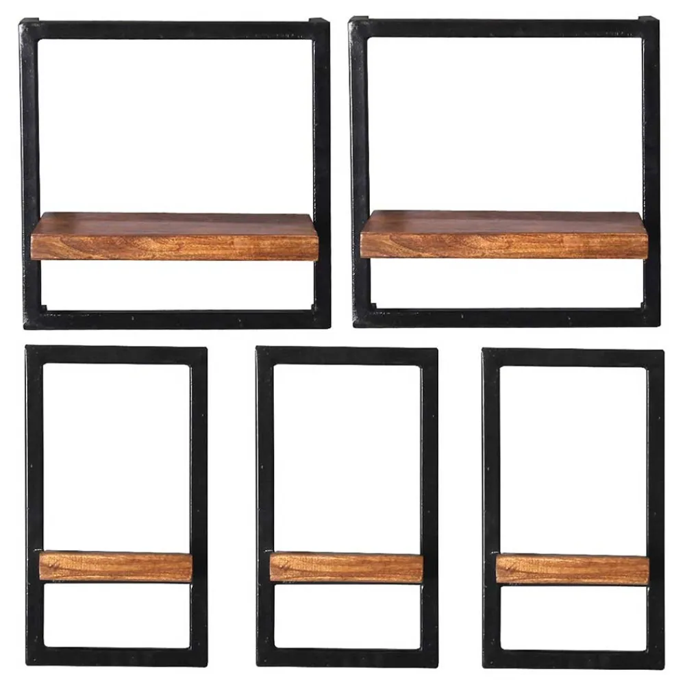 - Zeitgemäße Wandregale in Antikschwarz und Mangoholz Naturfarben