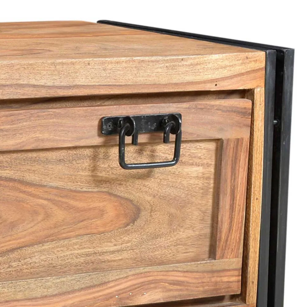 - Gebeizte und lackierte Holzoberfläche, Metallgestell antikschwarz lackiert