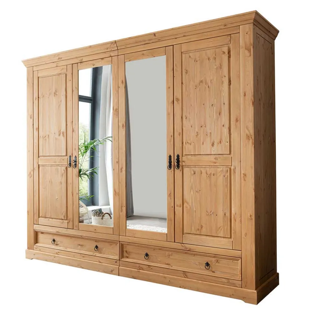- Zwei Türfronten verspiegelt, zwei dekorativ in Kassettenoptik gestaltet