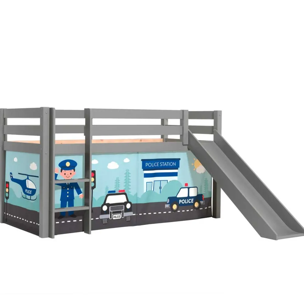 - Durchdachtes Kinder Halbhochbett in Grau und Bunt