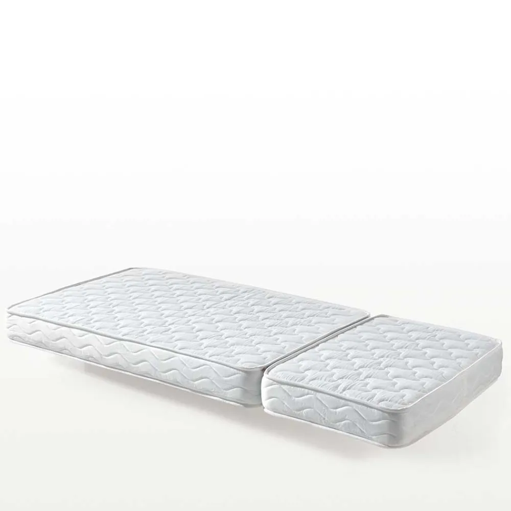 - Die Matratze ist zweigeteilt in ein 140/160 cm Element und ein 60/40 cm Element, die durch einen Reißverschluss miteinander verbunden werden können, um so das Maximalmaß von 200 cm zu bekommen