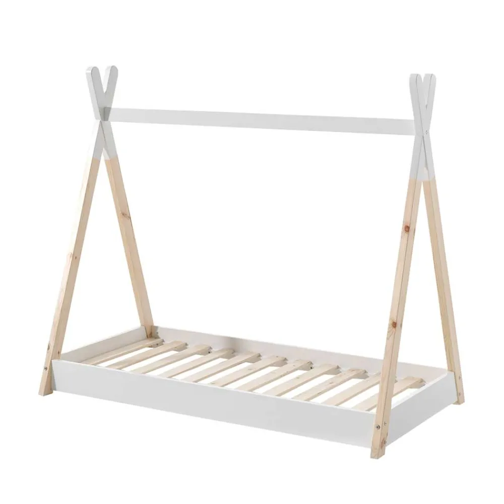 - Niedliches Tipi Kinderbett in Weiß und Kiefer Naturfarben