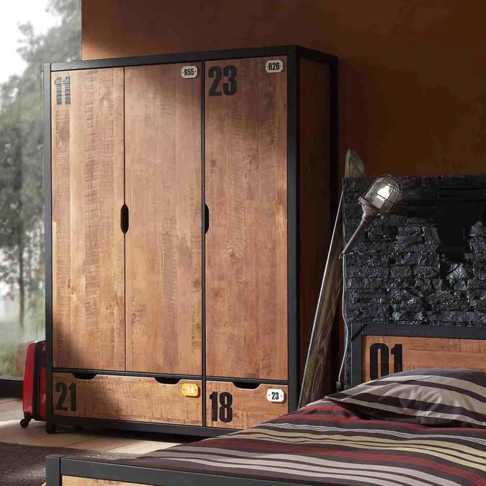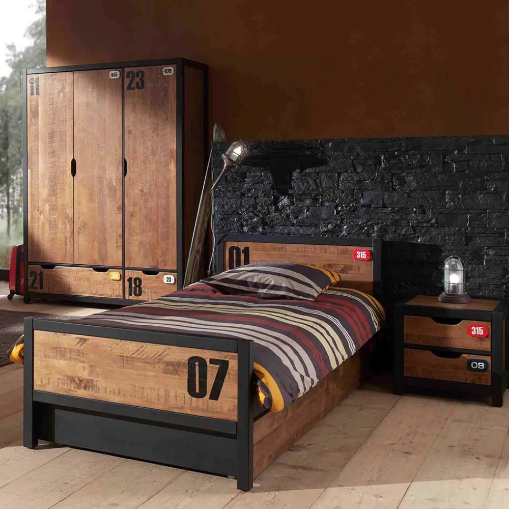 - Super Kinderzimmer in Kiefer Cognacfarben und Schwarz